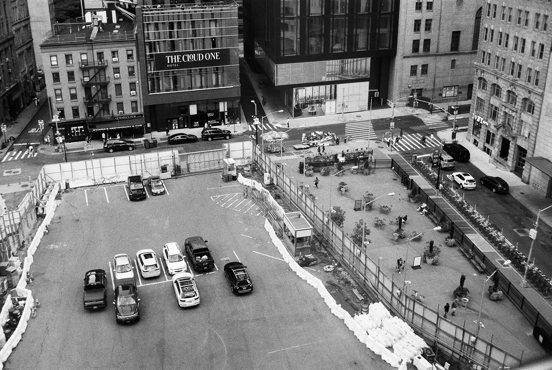 The next morning, after coffee and breakfast, I went for a walk through the Financial District, exploring the streets and light reflections between the skyscrapers. I also made a quick detour to Tribeca, where the mixture of architecture, street life, and shadows created strong frames that worked perfectly with the character of the Kentmere Pan 200.