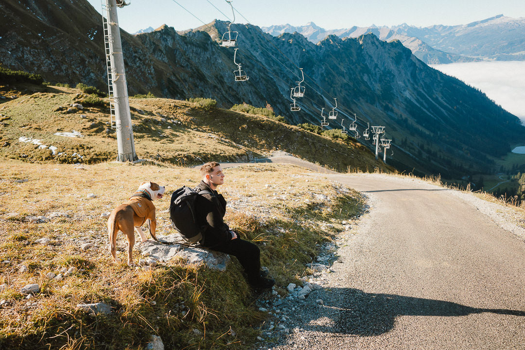 Der Hund genießt den Ausblick genauso wie wir – neugierig und entspannt.