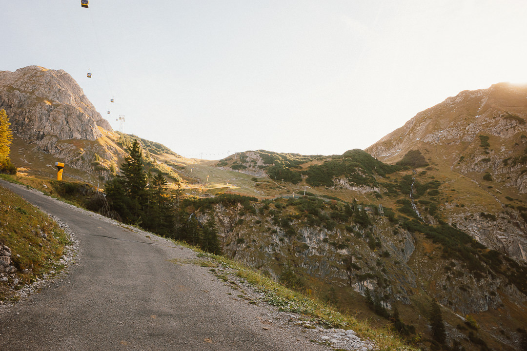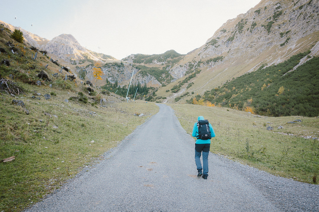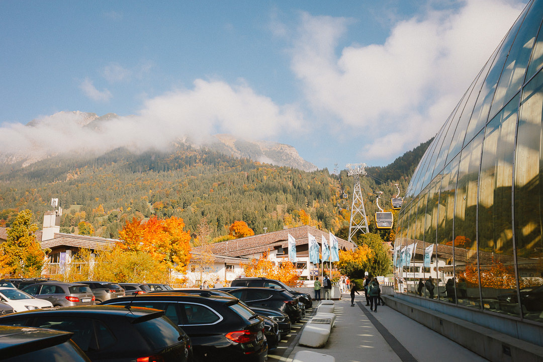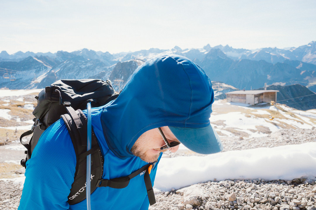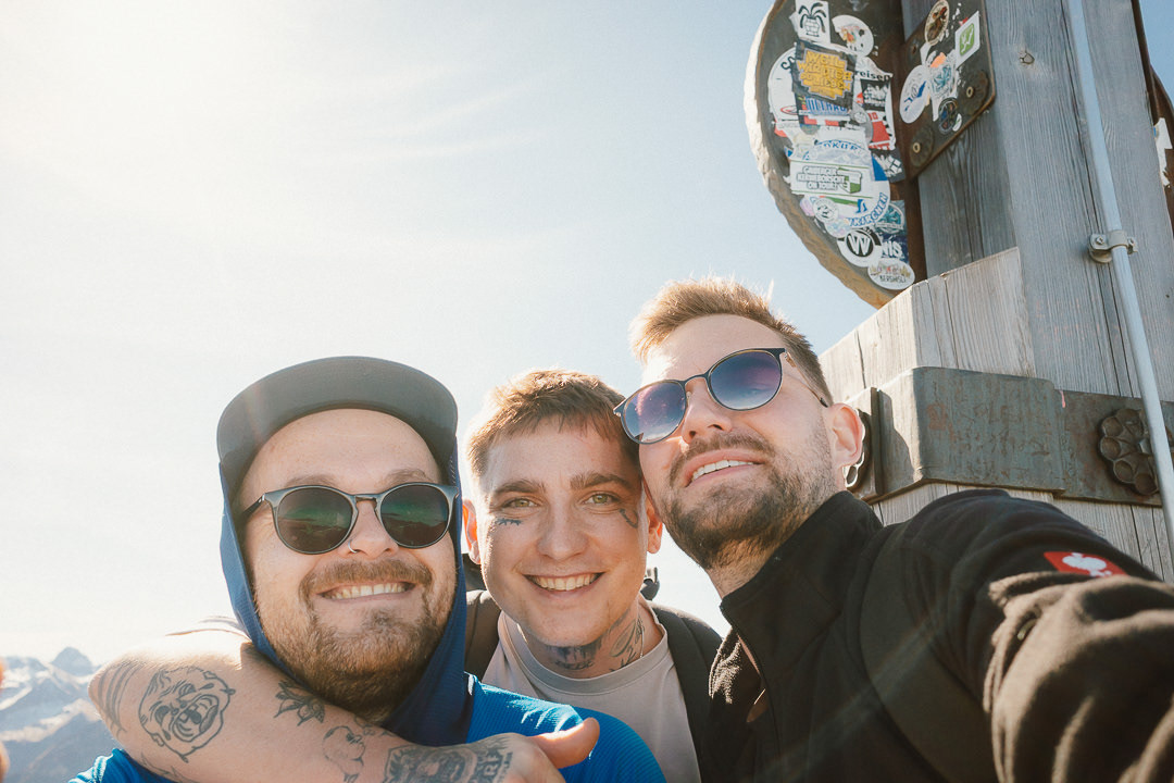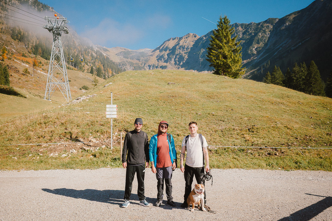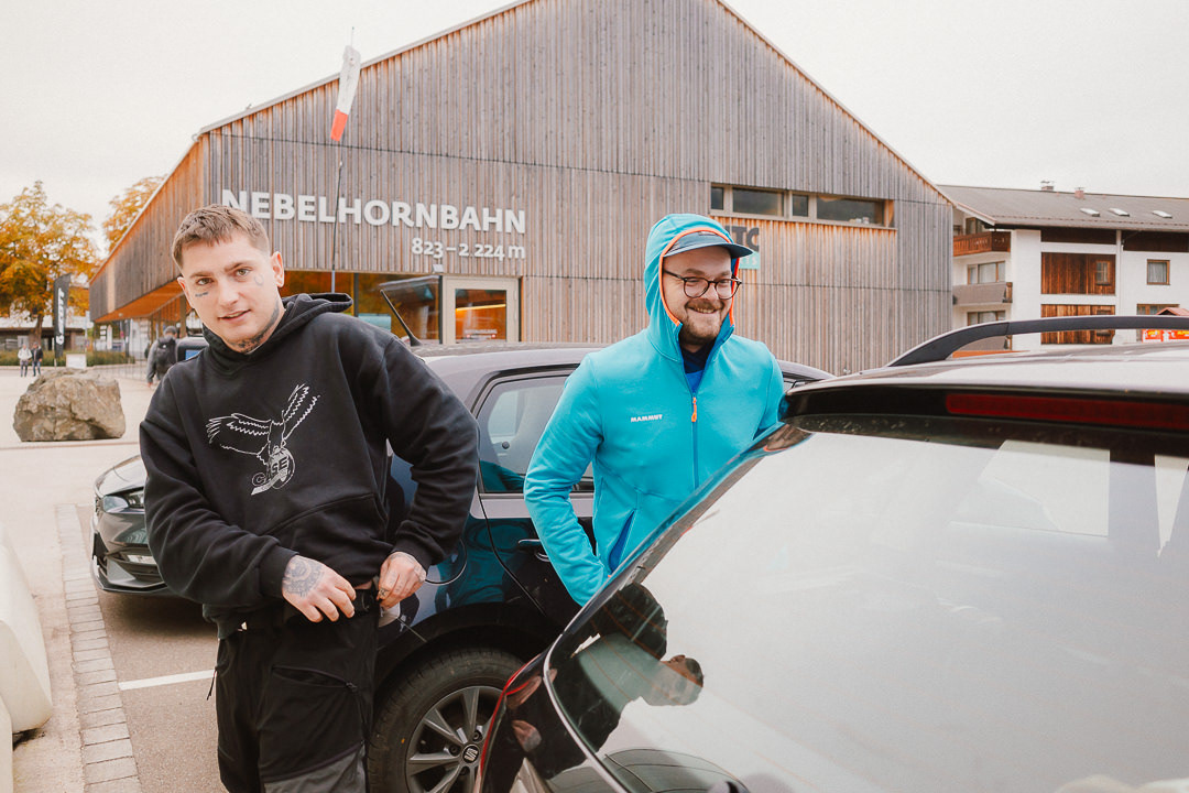 Matthias, Vince und ich starten am Parkplatz der Nebelhornbahn – noch etwas verschlafen, aber motiviert.