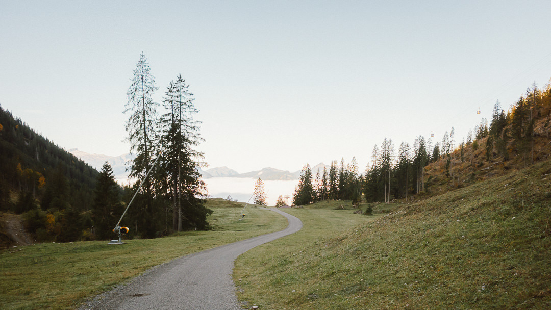 Ein stiller Moment auf dem Weg – der Pfad schlängelt sich durch grüne Hänge.